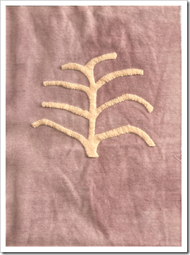 My not-so-perfect whip-stitched tree motif for the center of the bag.